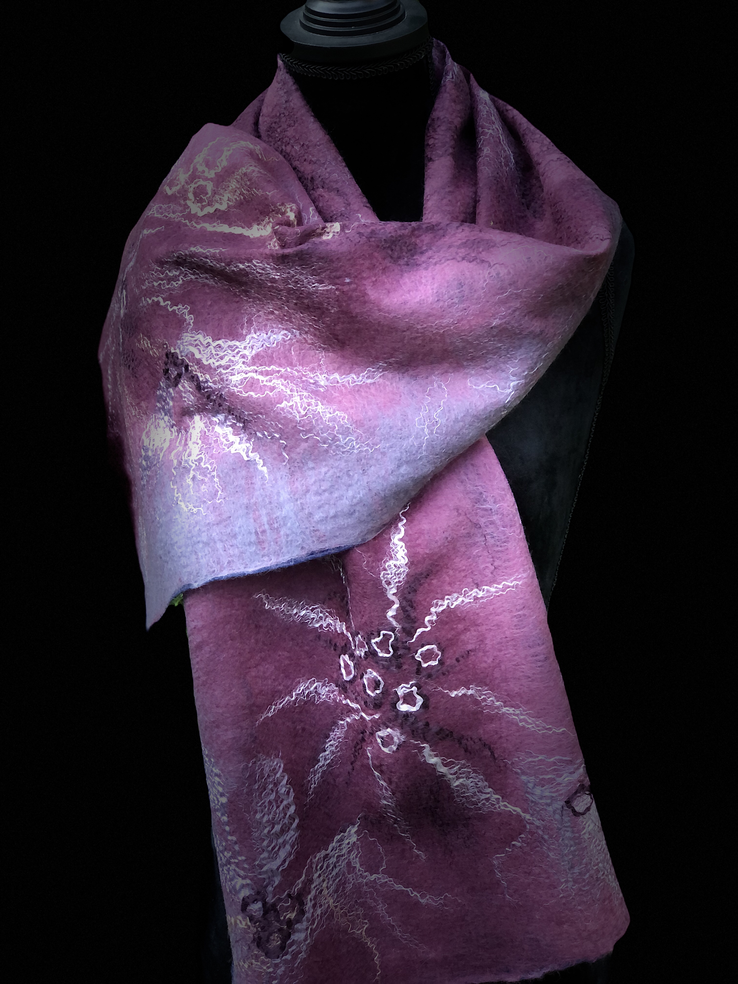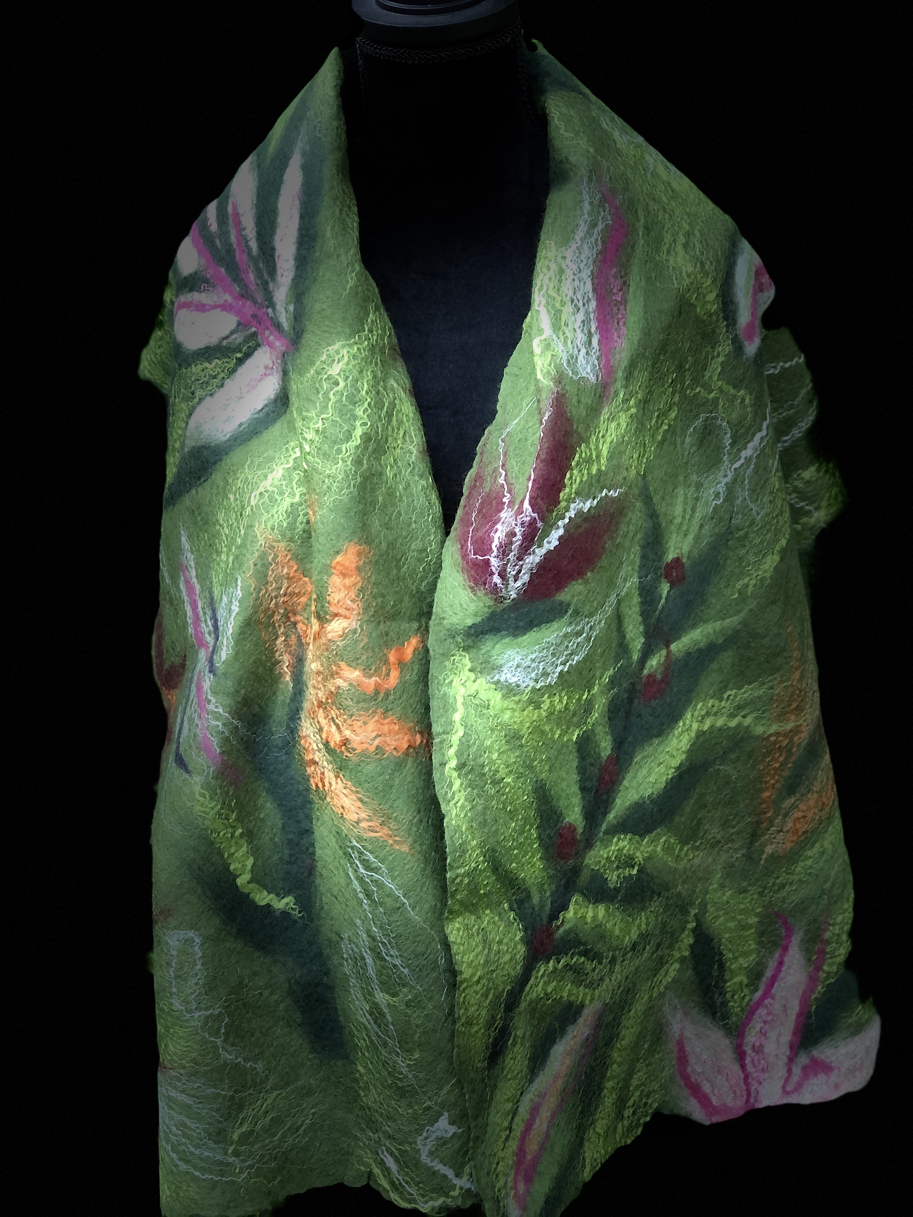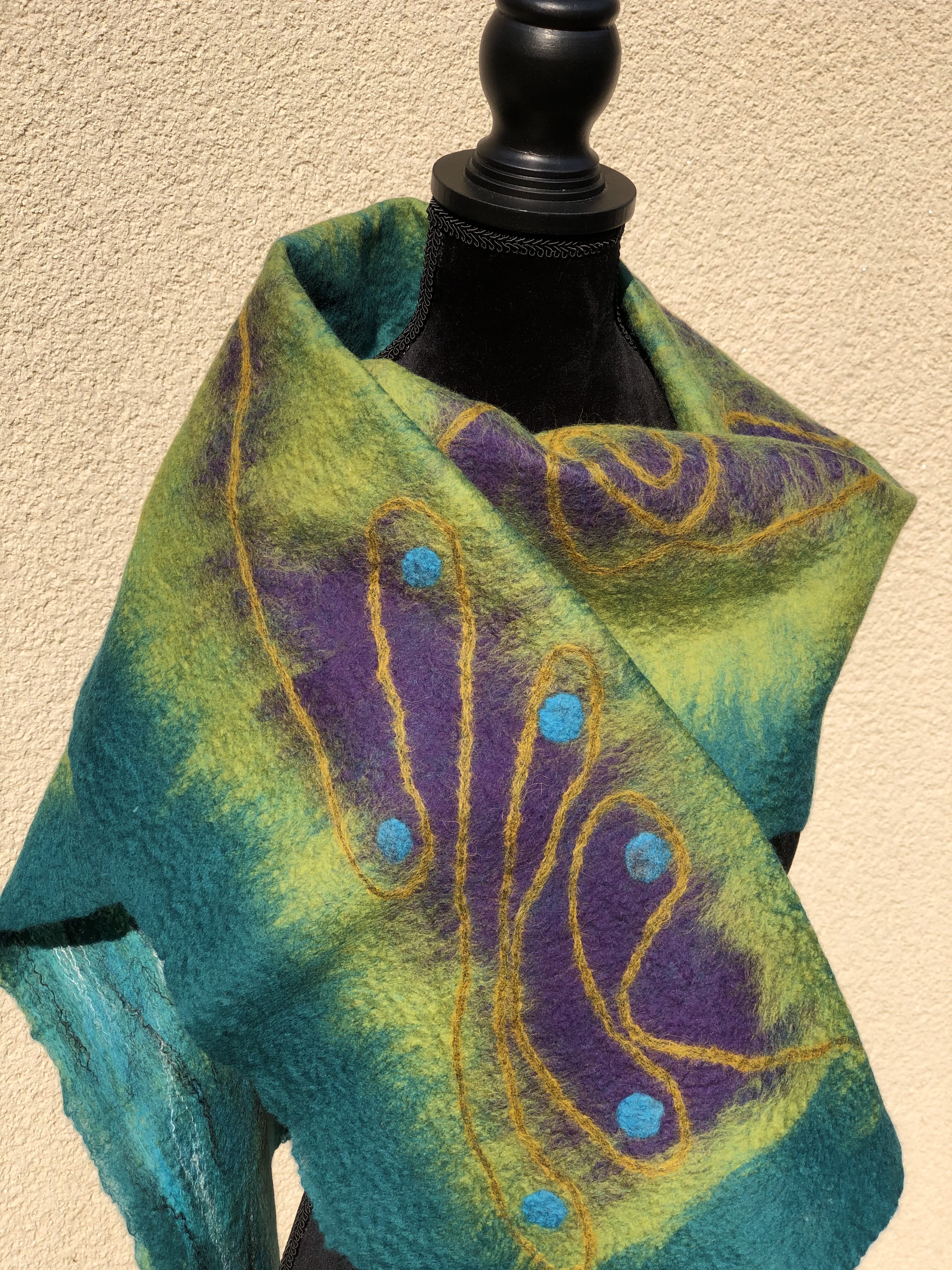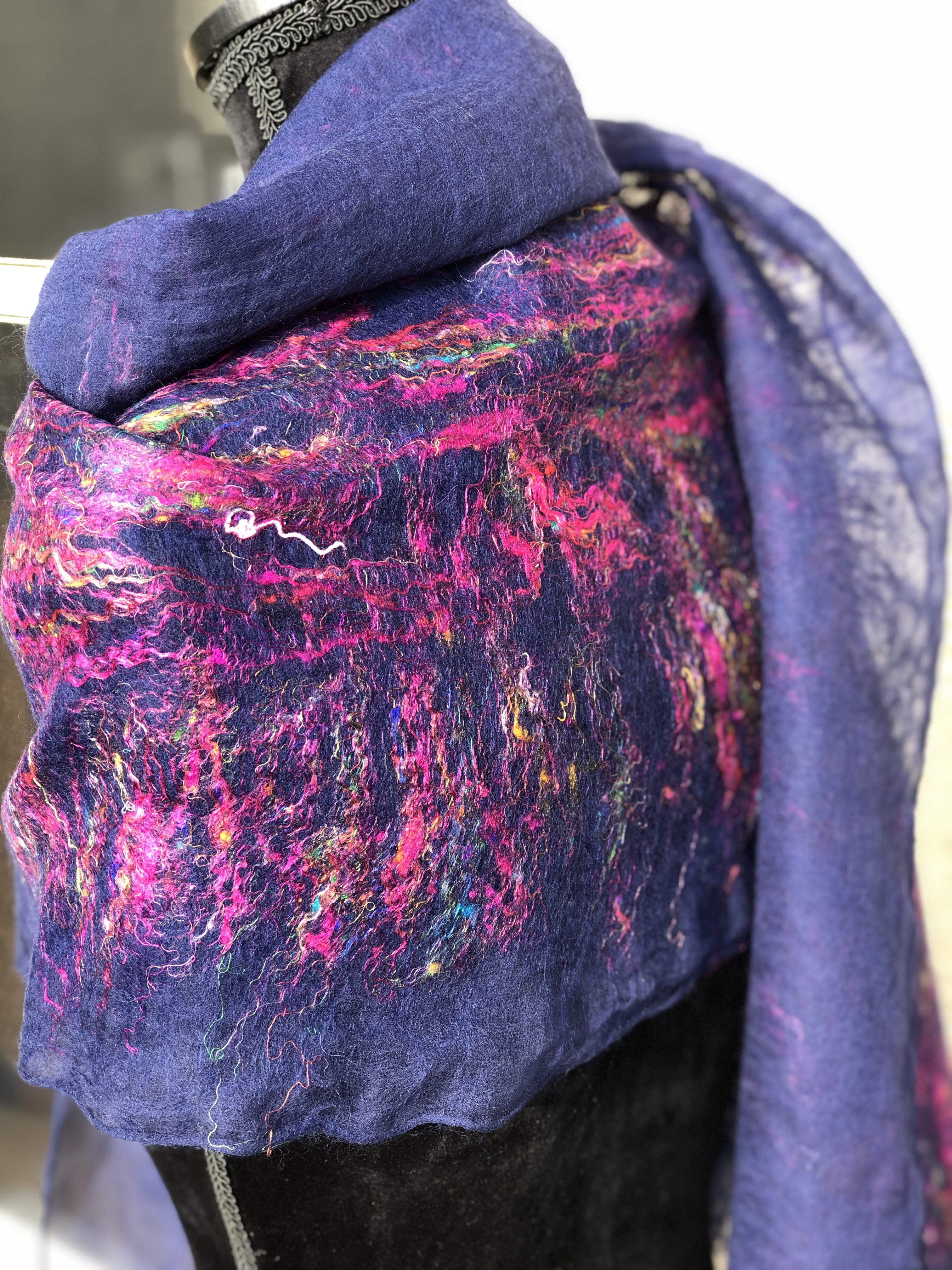 Scarves These are hand-felted scarves from the softest merino wool (16-19 microns) Share this: Share on X (Opens in new window) X Share on Facebook (Opens in new window) Facebook Like Loading...